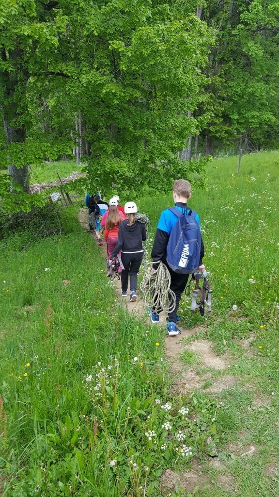 Am Montag, dem ersten Tag des Kletterkurses brachte uns der Kursleiter Christoph bei wie wir einander absichern konnten. Nachdem wir dies gelernt hatten, kletterten wir bereits am nächsten Tag auf Felsen, was uns allen erstaunlich gut gelang.