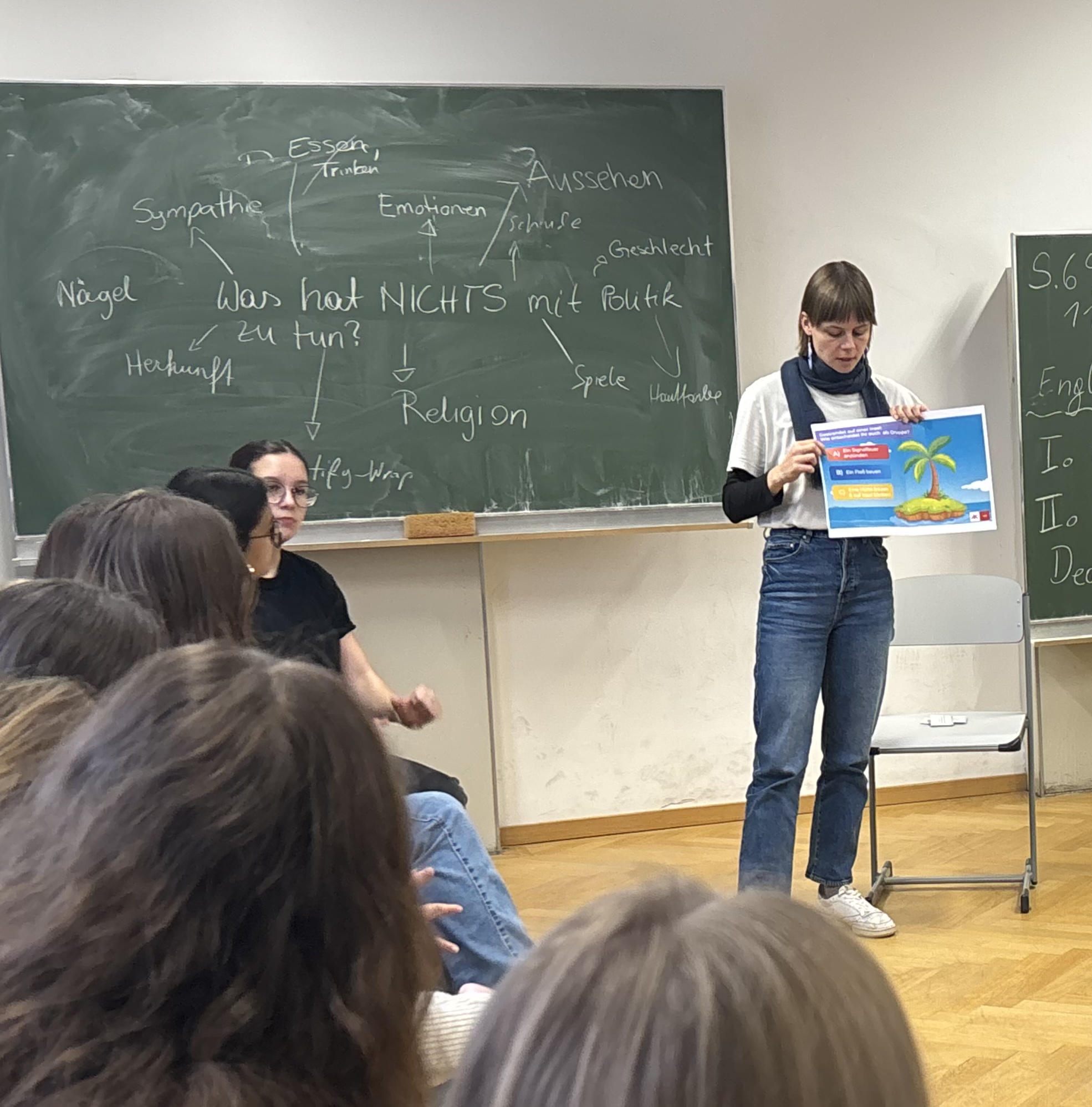Ein weiterer Schwerpunkt war die Frage, wie junge Menschen ihre Meinung einbringen können, auch wenn sie noch nicht wahlberechtigt sind. Die Klasse sammelte Möglichkeiten der politischen Partizipation, etwa durch Schulsprecherwahlen, Beteiligung an Projekten, Petitionen oder Engagement in Vereinen und Initiativen.