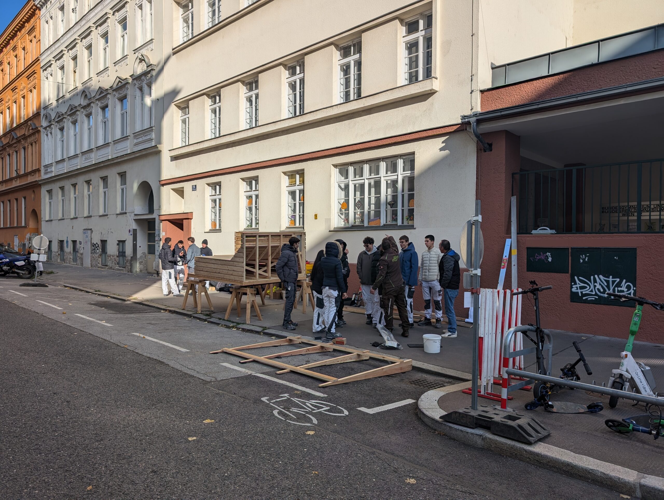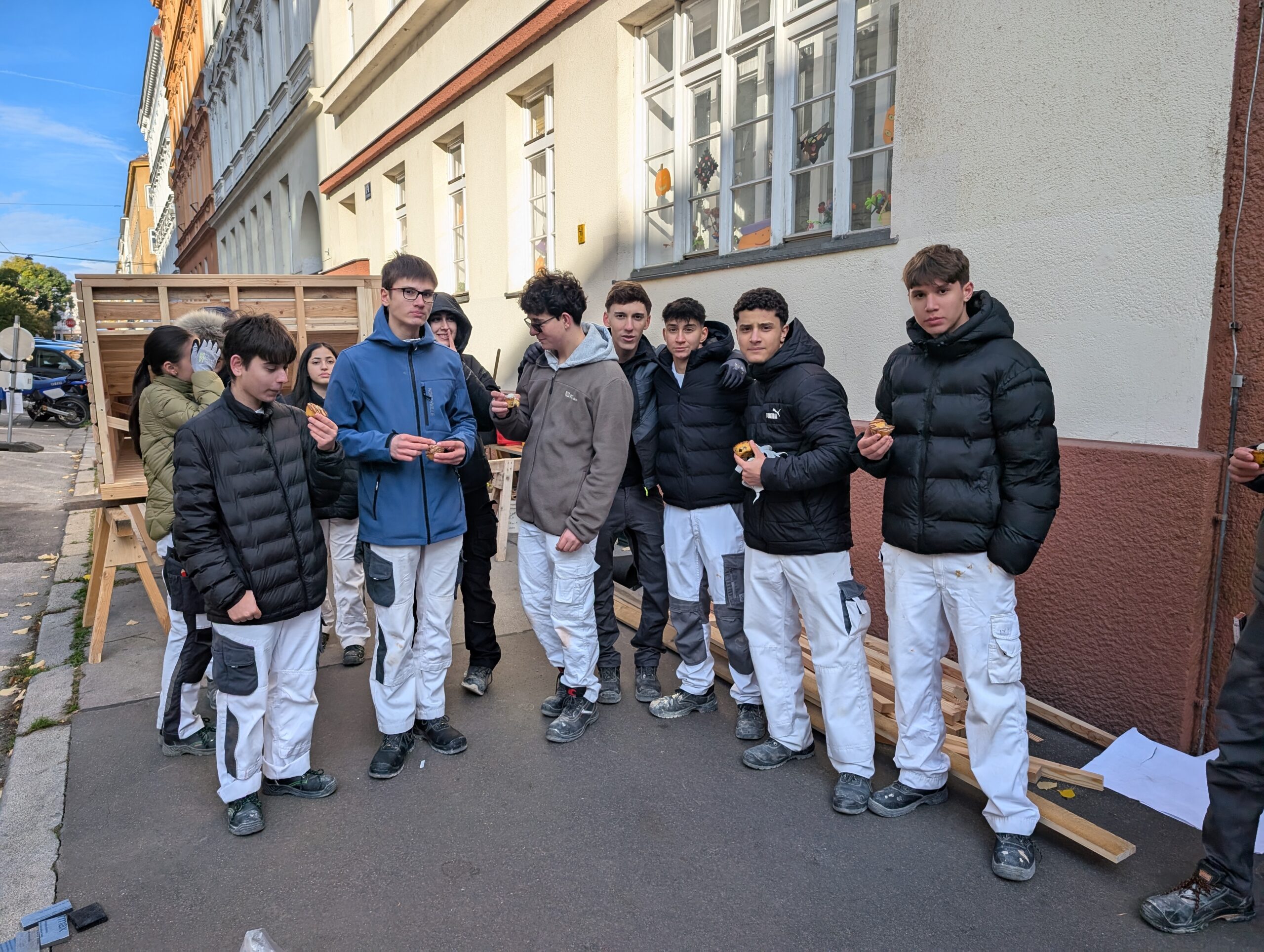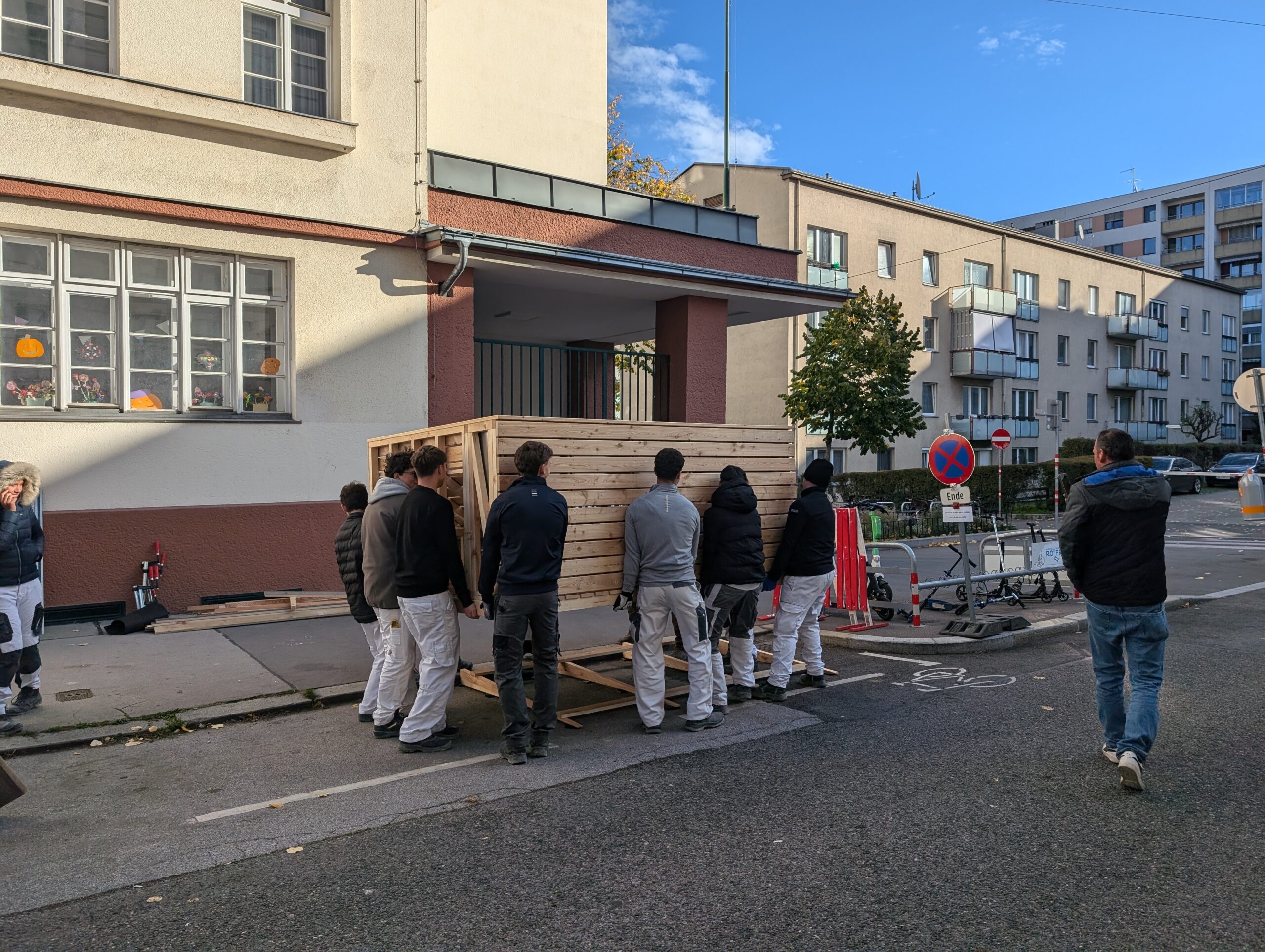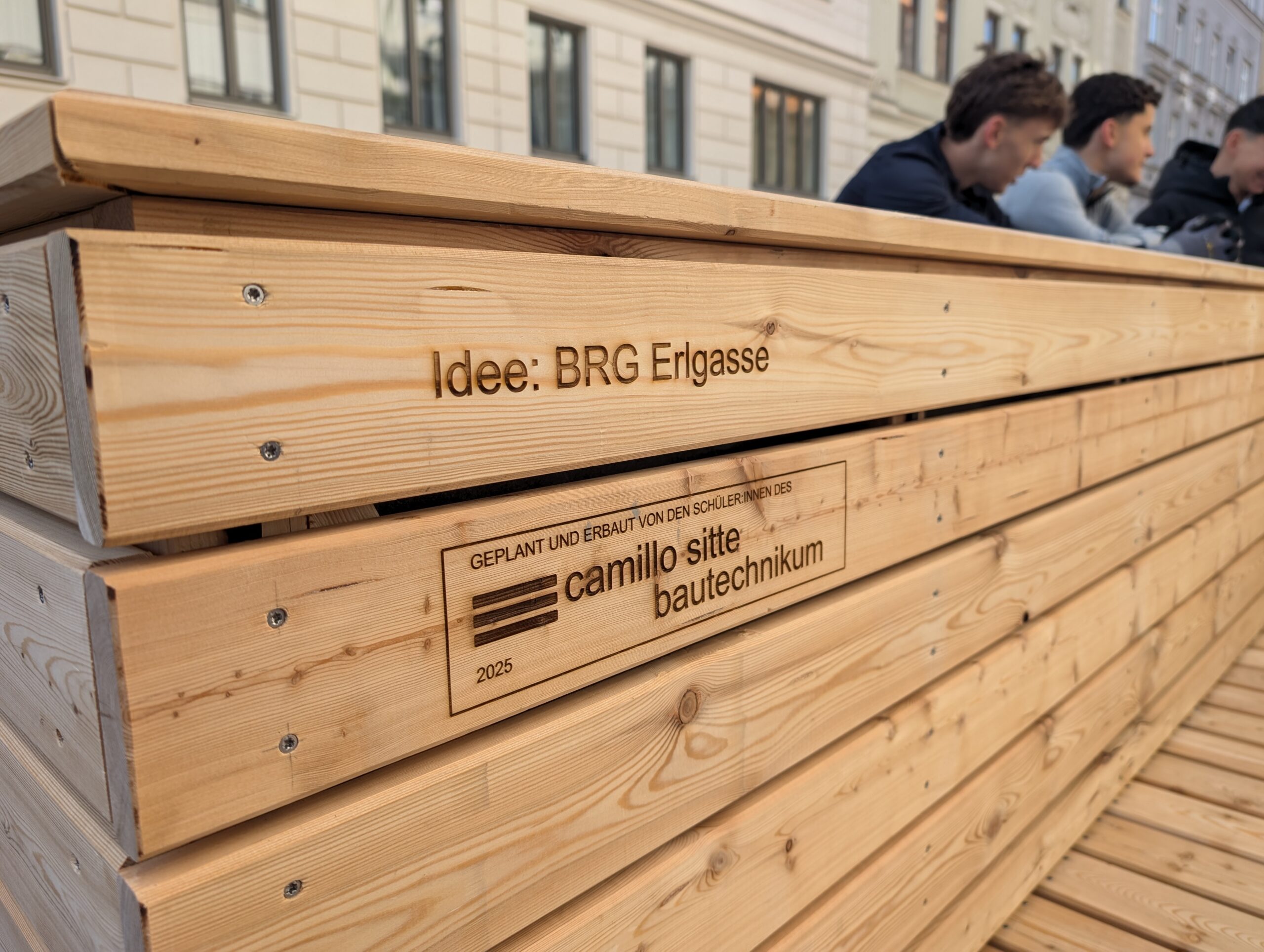 Die Schüler:innen und Lehrer des Camillo Sitte Bautechnikums haben mit großem Engagement und viel Einsatz die Oase nach den Entwürfen von Sara und den Ideen ihrer Klassenkolleg:innen in der 8B umgesetzt. Ende Oktober wurde sie schließlich professionell aufgebaut – ein großartiges Gemeinschaftsprojekt, auf das wir sehr stolz sind.
