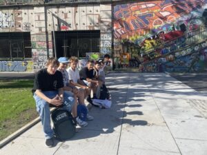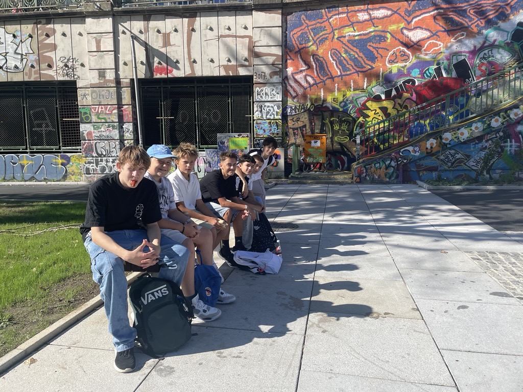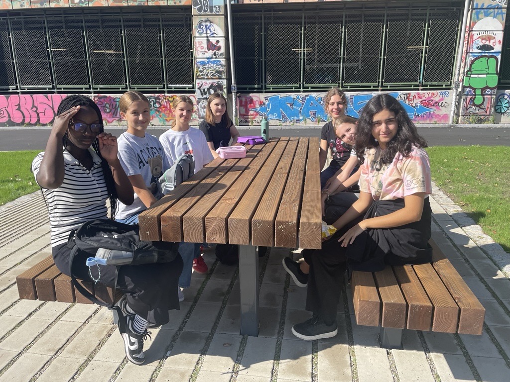 On September 3rd, 2025, our class (3E) visited the Europahaus with Prof. Seker and Prof. Westra. Before our workshop started, we sat down in a new park by the Danube and had some snacks.