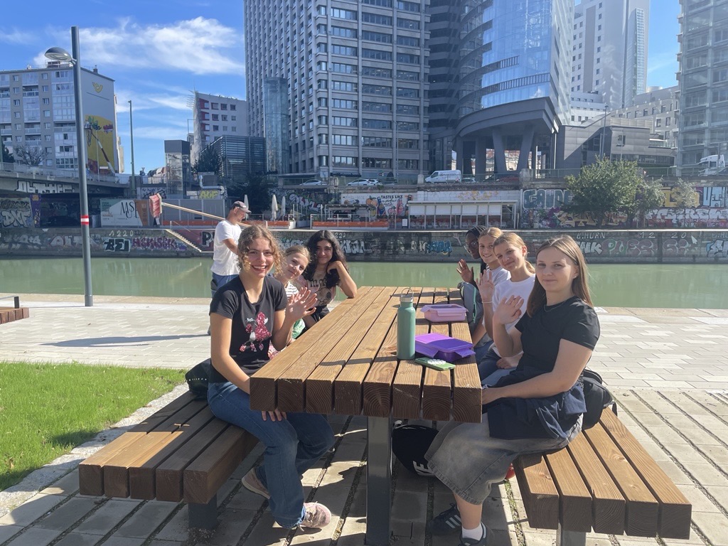 Am 3. September 2025 besuchten wir, die 3E, das Europahaus mit Frau Prof. Şeker und Herrn Prof. Westra. Vor unserem Workshop setzten wir uns an die Donau, in einen neuen Park, und aßen eine Jause.