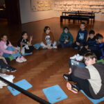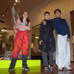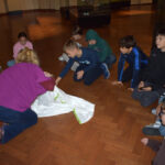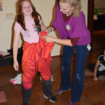 Dann ging es ans Experimentieren und noch weiter in der Geschichte zurück. Wir durften nämlich die ersten Hosen aus einfachen Tüchern nachbinden. So halfen sich frühe Reitervölker, denn ohne Hosen sitzt es sich auf Pferden nicht so gut. – Auch wenn die schon früher gebräuchlichen Röcke Männern ebenso gut standen wie Frauen.