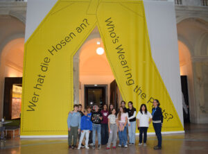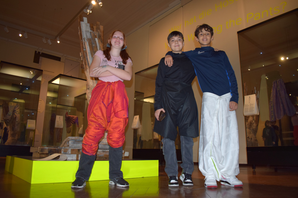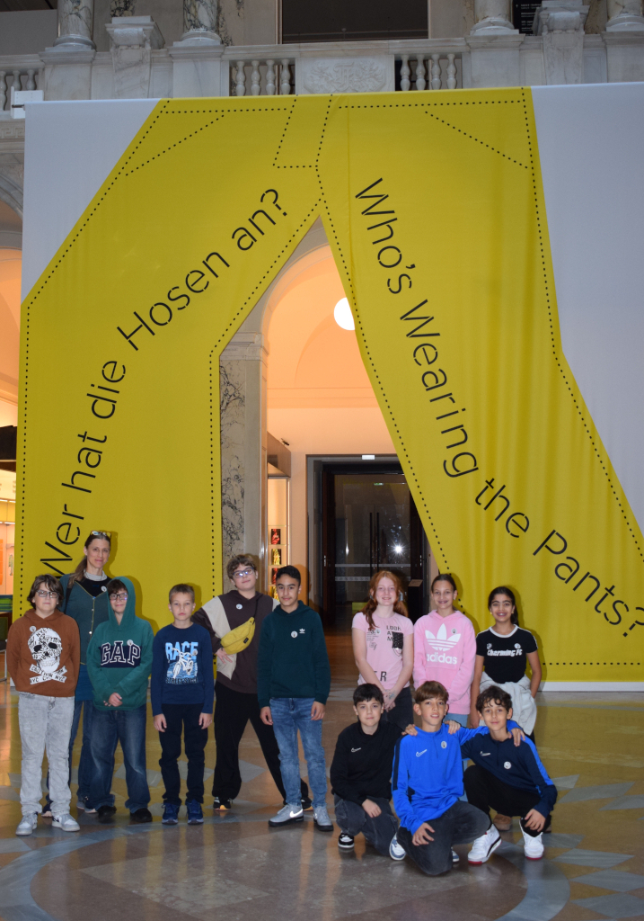 Im Oktober besuchte die 2A im Rahmen des Werkunterrichtes die Ausstellung “Wer hat die Hosen an?” im Weltmuseum. Dabei unternahmen wir einen Streifzug durch die Kulturgeschichte dieses alltäglichen (oder – je nach Exemplar – auch sehr besonderen) Kleidungsstückes. Wir verfolgten den weiten Produktionsweg einer Jeans, erfuhren z. B. dass „Denim” ursprünglich „de Nîmes” – also aus der französische Stadt Nîmes importiert – bedeutete und „Jeans” eigentlich von Genua (fanzösisch: gênes) stammt.