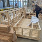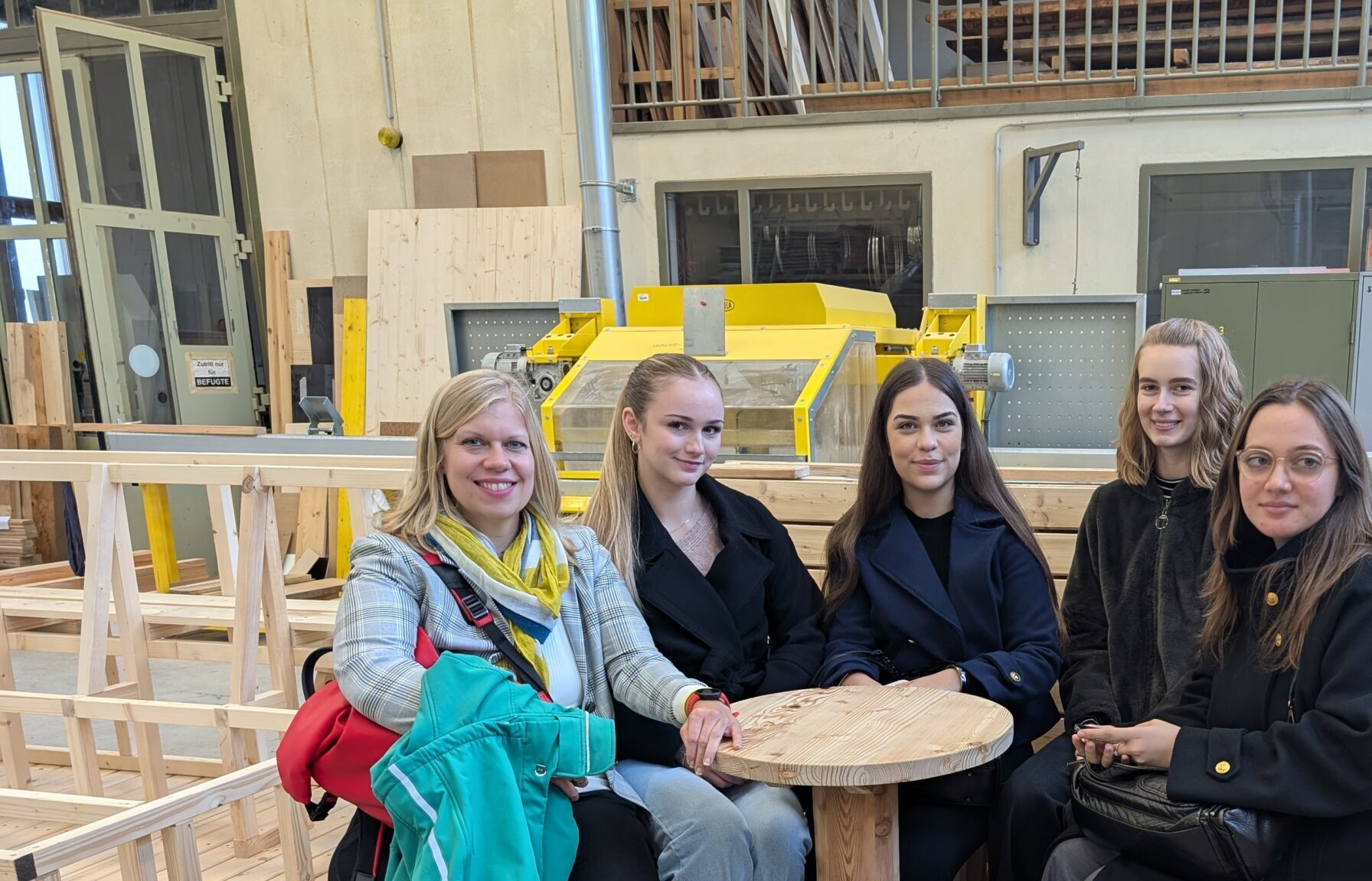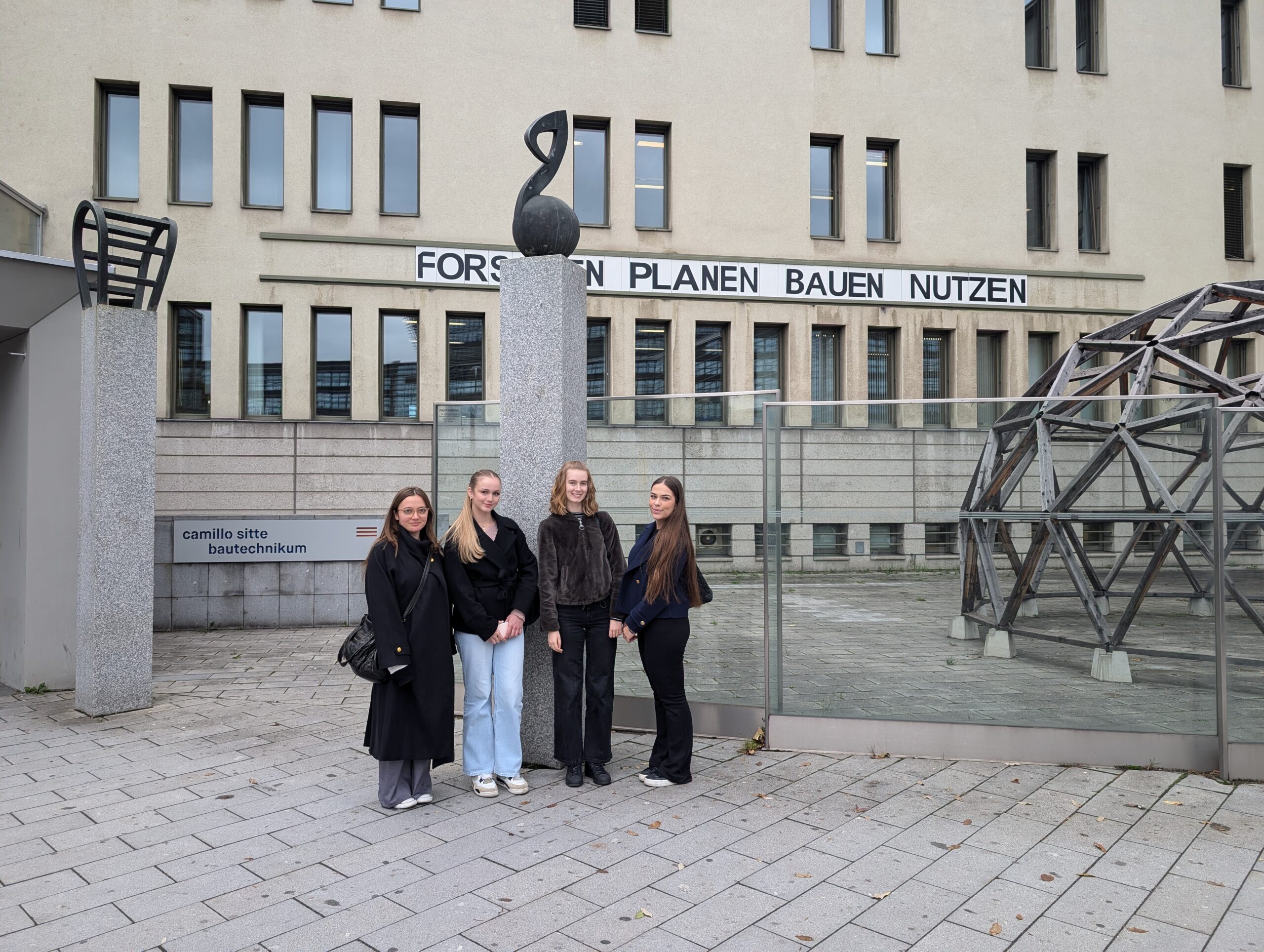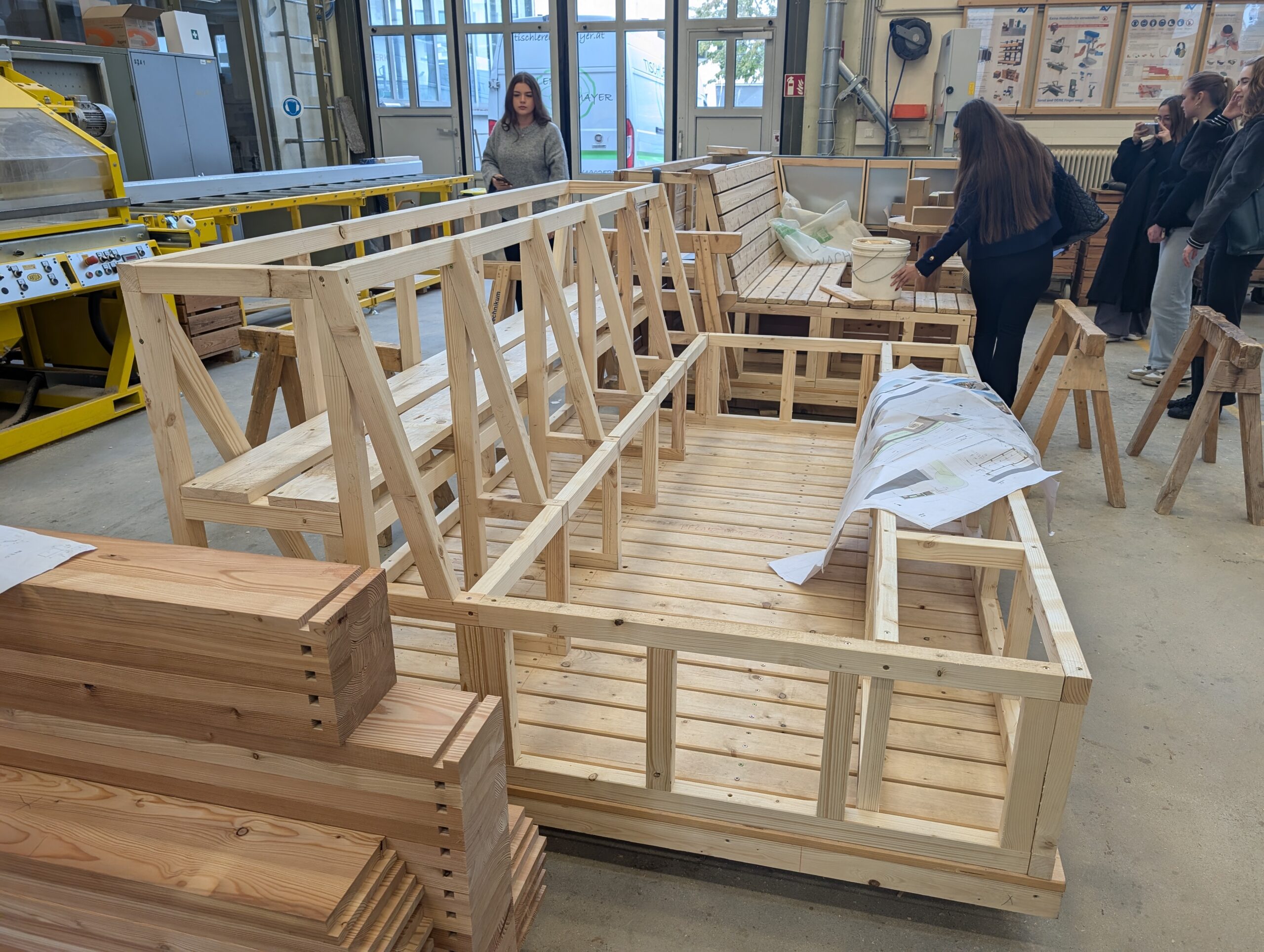 Es ist bald so weit: unsere Grätzloase OasERL ist kurz vor der Fertigstellung und soll ab 20. Oktober aufgebaut werden, davor wollte das Team Grätzloase dem Camillo-Sitte-Bautechnikum noch einen Besuch abstatten. Bauhofleiter DI Markus Berger ermöglichte uns einen Einblick in den Baufortschritt und führte uns durch die Werkstätte. Sara, Elena, Emily und Dilara aus der 8B kamen gemeinsam mit Prof. Seidl als Erste in den Genuss, es sich im OasERL gemütlich zu machen. Die Ausführung in naturbelassenem Lärchenholz ist ein Traum, die Verarbeitung großartig und die Schülerinnen begutachteten ihren Entwurf sehr liebevoll.
