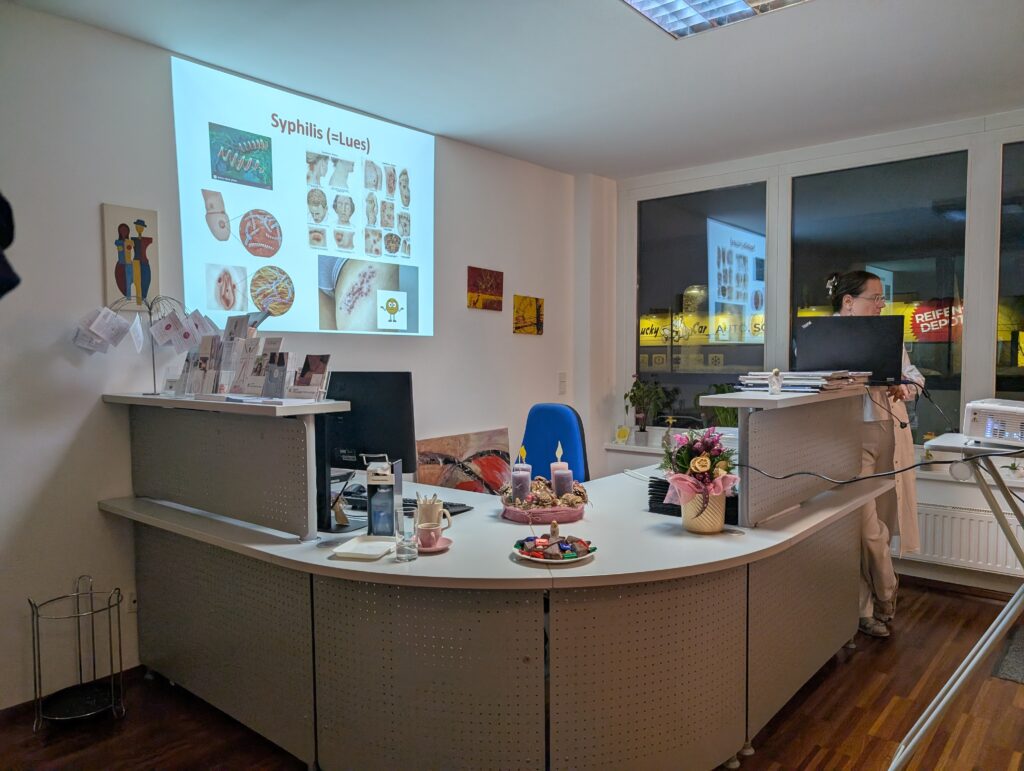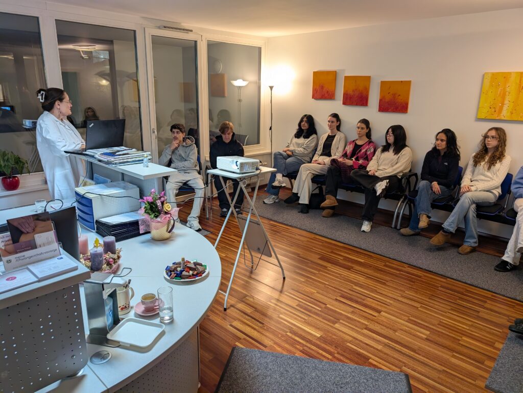 Die SchülerInnen der 6. Klasse hatten vor Weihnachten die Gelegenheit, einen Vortrag von Universitätsdozentin und Gynäkologin Dr. Hirtenlehner-Ferber in ihrer Ordination in der Linzer Straße im 14. Bezirk zu hören. Themen waren Geschlechtskrankheiten und Endometriose; die SchülerInnen hatten darüber hinaus permanent die Gelegenheit, Fragen zu stellen. Im Anschluss zeigte uns Frau Dr. Hirtenlehner-Ferber auch noch die Untersuchungsräume inklusive Instrumente und erklärte, wie der erste Besuch bei der Frauenärztin abläuft. Die Veranstaltung hat mit Sicherheit einige Ängste genommen und wir bedanken uns für das spannende Angebot!