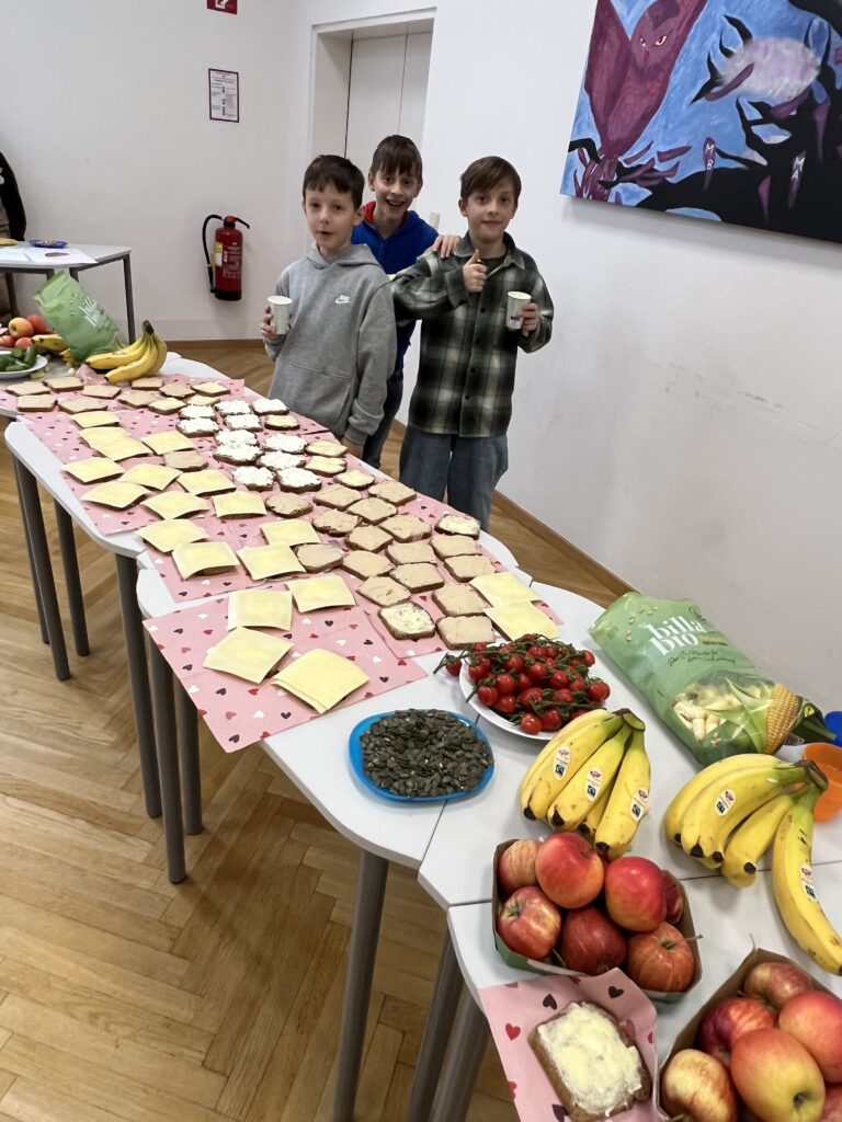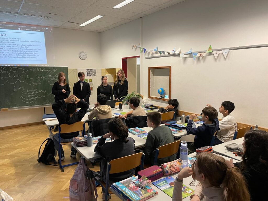 Zur Präsentation waren neben den unterstützenden 7.-Klässler:innen auch die 1D sowie die Eltern eingeladen. Für einen besonders gelungenen Rahmen sorgte ein Buffet mit gesunden und nachhaltigen Speisen, das von den 7.-Klässlerinnen liebevoll vorbereitet wurde.