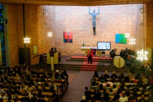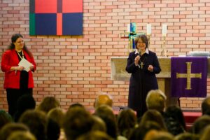 Die evangelischen Schüler:innen der 5. Klasse waren dieses Jahr im Februar am evangelischen Friedenstag unter dem Motto “Toleranz:Grenze”. Die Schüler:innen wurden ermutigt für eine gerechtere Welt einzutreten und hatten die Gelegenheit Workshops zu besuchen und einem Zeitzeugen zuzuhören. Großer Hit waren dabei der Sucht- und Gewaltpräventionsworkshop und das gemeinsame Trommeln. Besonderes Highlight war auch der Besuch der neuen evangelischen Bischöfin, die den Schüler:innen Mut zusprach.