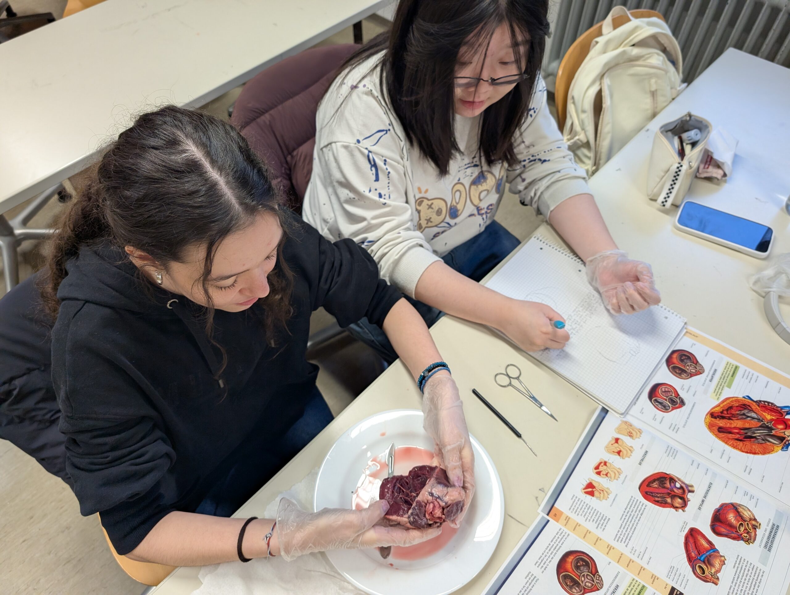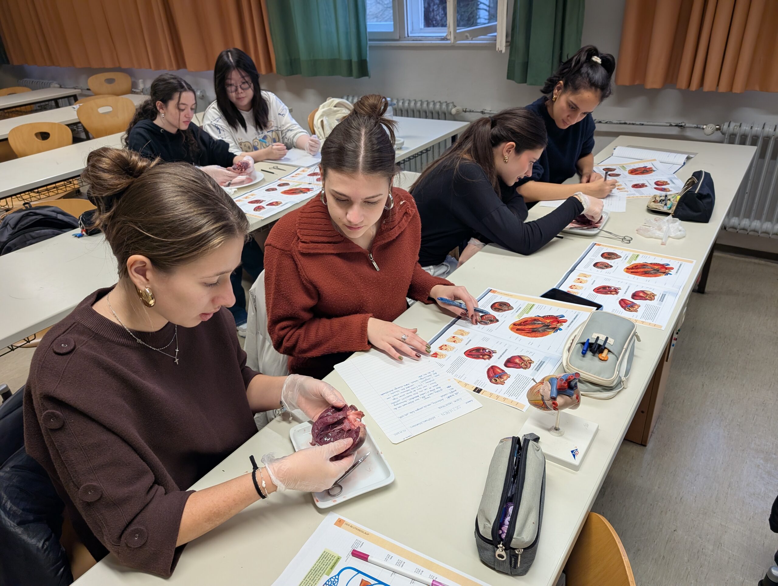 Die SchülerInnen der 6A sezierten im Rahmen des Wahlpflichtfachs Biologie Schweineherzen und wiederholten anhand der Präparate den Blutkreislauf der Säugetiere. Außerdem fertigten sie wissenschaftliche Zeichnungen an und erstellten Protokolle ihrer Sektionen.