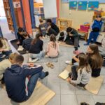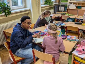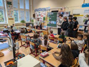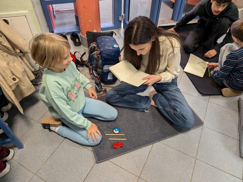 Der erste Reisestopp war ein Kennenlerntreffen beider Klassen im Herbst an der Volksschule Mondweg. Die SchülerInnen der 6a, von denen einige zu PeermediatorInnen ausgebildet sind, sorgten spielerisch für ein unterhaltsames Kennenlernen – das Eis war sofort gebrochen. Innerhalb kürzester Zeit fanden sich Teams, bestehend aus Buddy aus der Erlgasse und Partnerkind vom Mondweg. In diesen Teams wurde sogleich an Geschichten gearbeitet.