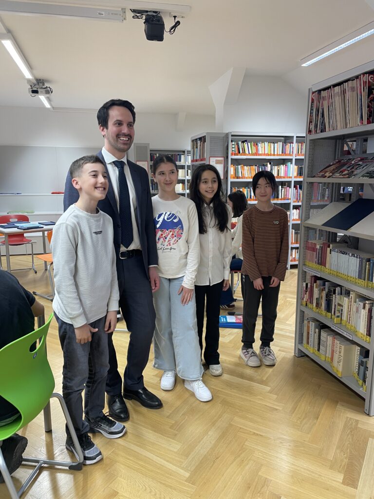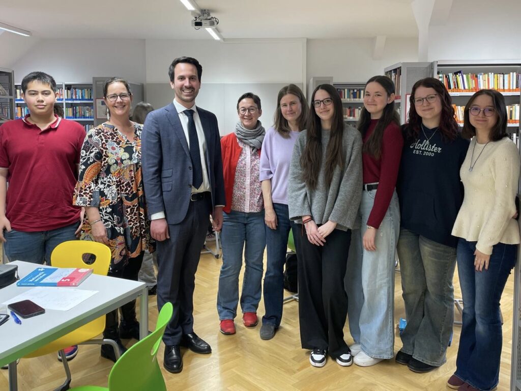 Am Freitag, 10.4., hat der Bildungsminister Christoph Wiederkehr unsere Schule besucht.