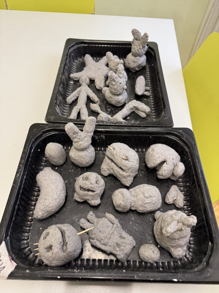 - Natur & Modellieren: Wir haben bereits Figürchen aus Ästen gestaltet und mit Modellierton und Pappmache phantasievolle Skulpturen erschaffen.