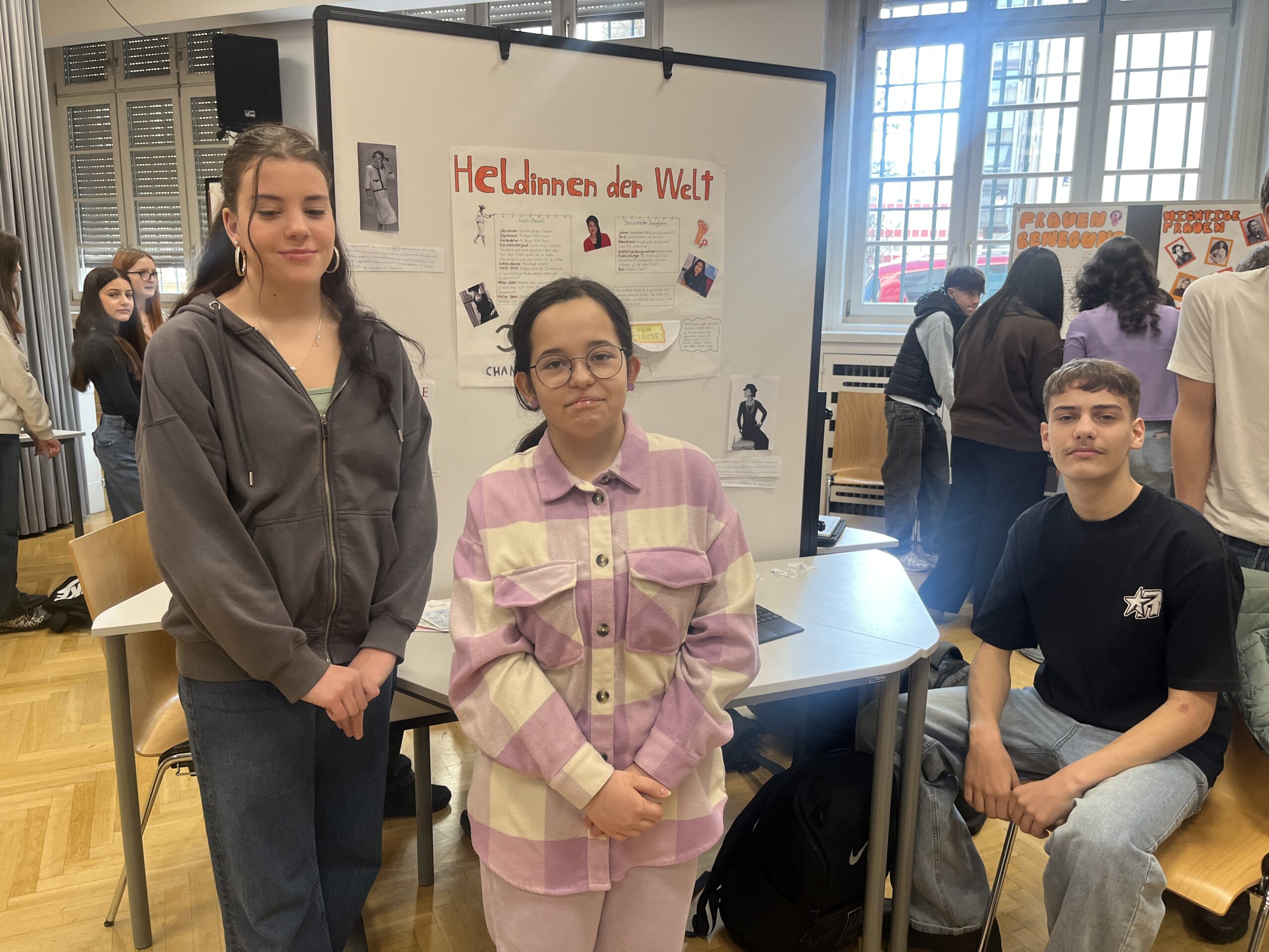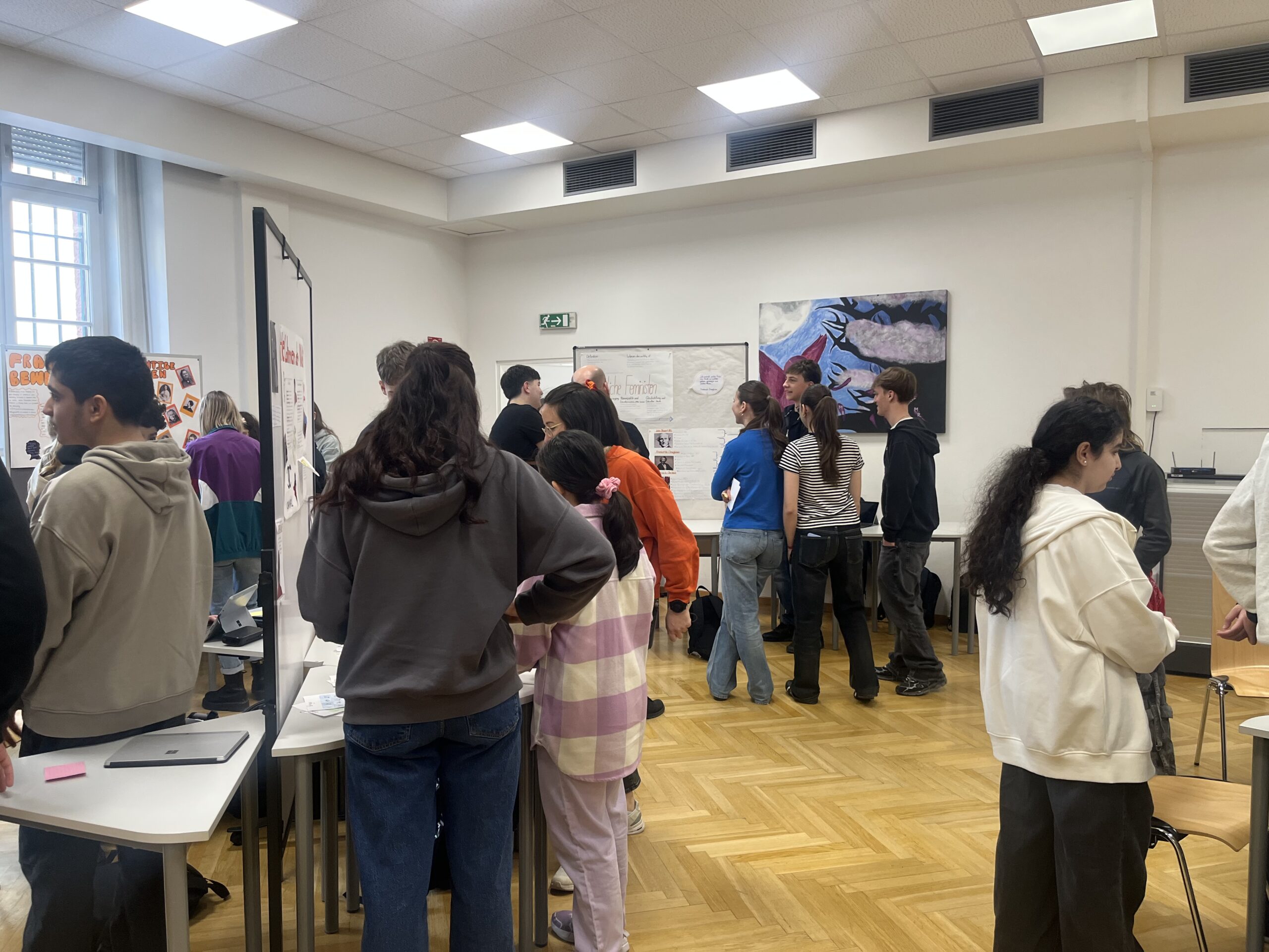 Anlässlich des Weltfrauentages verwandelten die Schüler:innen der 4A und 4C den Festsaal in einen Ort des lebendigen Austauschs. Im Zentrum des fächerübergreifenden Projekts stand das Thema Equality. Zwei Tage lang tauchten die Jugendlichen in Kleingruppen tief in ganz unterschiedliche Facetten der Gleichberechtigung ein. Dabei setzten sie sich beispielsweise mit historischen Heldinnen, der rechtlichen Stellung der Frau und der Entwicklung von Frauenbewegungen ebenso auseinander wie mit männlichen Feministen, dem Kampf um das Wahlrecht und dem Wandel des Frauenbildes in der Werbung von damals bis heute.