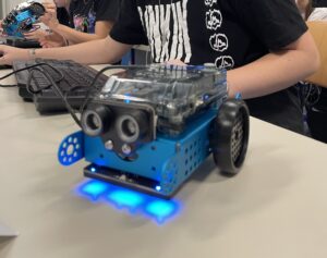 In der ersten Aufgabe „Painting with Light“ verwandelten die Mädchen ihren mBot‑Roboter in einen echten Künstler. Ausgestattet mit einer Lichtquelle bewegte sich der Roboter durch einen dunklen Raum und erzeugte mithilfe langer Belichtungszeiten faszinierende Lichtbilder. So entstanden kreative Kunstwerke, die Hoffnung und Wärme in die dunkle Winterzeit bringen sollten – Technik und Kunst perfekt vereint!