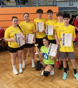 Im Bewerb der Unterstufe Mixed im Volleyball konnte das Team des Gymnasiums Erlgasse in diesem Schuljahr an die Erfolge des Vorjahres anschließen und diese sogar noch übertreffen. Nachdem im vergangenen Jahr bereits der hervorragende dritte Platz erreicht worden war, gelang heuer eine weitere Steigerung.