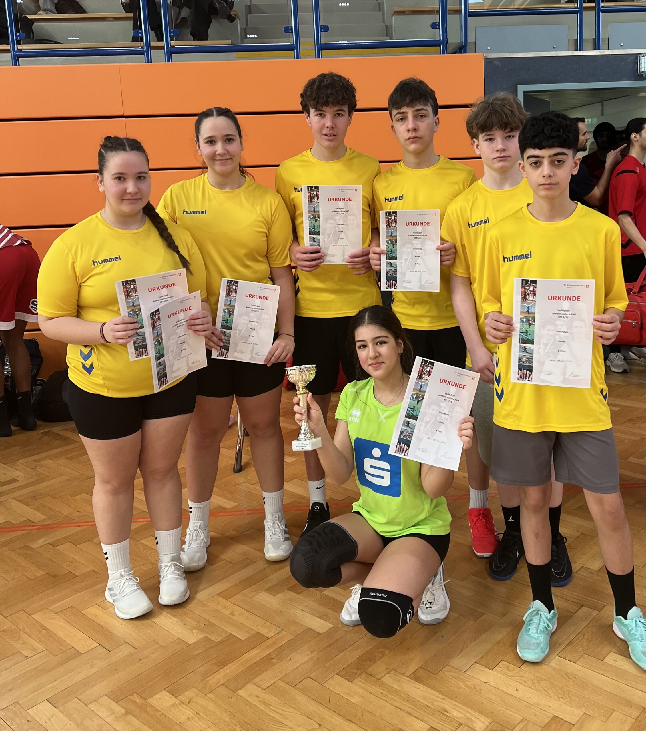 Erlgasse Volleyball Team: Asye 3C, Sonja 4C, Stefani 4D, Sanja 4E, Sofija 4E, Salomey 4E, Raphael 4C, Francesco 4C, Luca 4C, Eren 4D, Manuel 4E, Ivan 4E