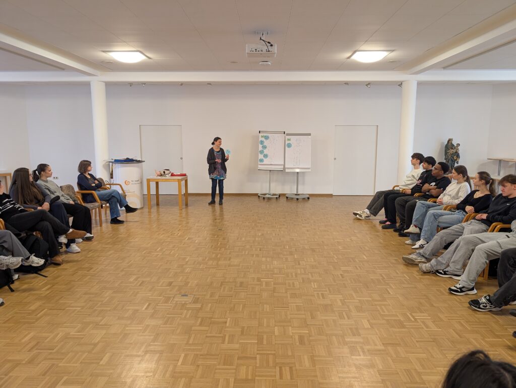Die SchülerInnen der 6A hatten im Rahmen eines dreistündigen Vortrags von Simone Wimmer, Hebamme bei Young Mum im St. Josef Krankenhaus, die Gelegenheit, Fragen rund um Schwangerschaft und Geburt zu stellen. Dabei ging es nicht nur um biologische und medizinische Grundlagen, sondern auch um die rechtliche Situation bei der Betreuung von jungen Eltern. Anhand des Beispielpaares Ona und Fynn wurden Möglichkeiten aufgezeigt, die junge Frauen haben, sobald sie von einer ungeplanten Schwangerschaft betroffen sind.