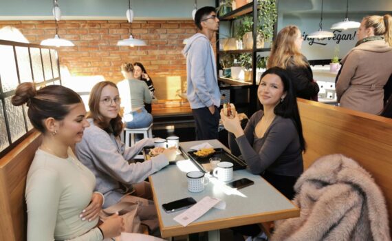 Der SDG-Tag der 8. Klassen begann mit einem spannenden Vortrag von Dipl.-Ing. Walter Schneider von der BOKU Wien zum Thema „Die klimaneutrale Smart City“, in dem den Fragen,welche Lösungen Smart Cities für Probleme wie Überbevölkerung, Abfall, Verkehr, Luftverschmutzung, Hitze und Bodenversiegelung bieten und wie Smart Cities mehr Platz, Ruhe, Grünflächen und Lebensqualität bieten können, nachgegangen wurde. Danach führte es uns in eine Filiale des veganen Burgerlokals „Swing Kitchen“, wo wir herzlich vom Gründer Charly Schillinger empfangen und in die Entstehungsgeschichte des Lokals und die Bedeutung von fleischloser sowie veganer Ernährung für den Planeten eingeführt wurden. Anschließend durfte natürlich eine Kostprobe nicht fehlen. Bei einem „Verdauungsspaziergang“ ließen wir den gemeinsamen SDG-Tag schließlich ausklingen, bevor wir die Rückfahrt nach Meidling antraten.