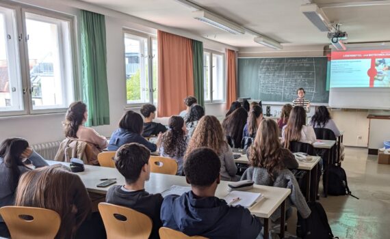 Passend zu unserem Lehrstoff zur Immunbiologie hörte die 6A am 13. Oktober einen überaus interessanten Vortrag zu pathogenen Bakterien von PhD Fiona Hager-Mair, die im Rahmen der Initiative Wissenschafft Zukunft der BOKU Wien unsere Schule besuchte. Neben recht anspruchsvoller Theorie zu den Strategien der Bakterien, sich vor unserem Immunsystem zu verstecken, brachte uns unsere Vortragende auch Agarplatten mit, die sogleich mit Fingerabdrücken unserer SchülerInnen versehen wurden. Mal sehen, wofür wir hier einen Nährboden haben – wir werden berichten.